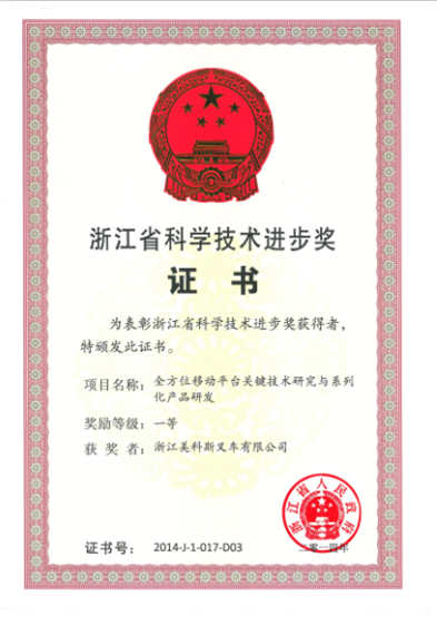 2015年4月15日上午,浙江省科学技术奖励大会在省人民大会堂召开。由美科斯与中国人民解放军装甲兵工程学院、浙江大学、杭州电子科技大学共同完成并作为该项目实施方的“全方位移动平台关键技术研究与系列化产品研发”项目获得2014年“浙江省科学技术进步一等奖”。这是美科斯至2006年组建以来第一次获得浙江省最高级别的科研奖项也是富阳企业历史上作为项目实施方首次获得“浙江省科学技术进步一等奖”。